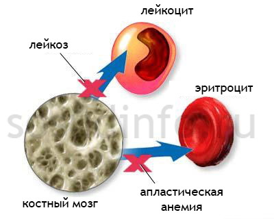 Формування клітин крові з кісткового мозку. При апластичної і гипопластической анеміях спостерігаються порушення при виробленні лейкоцитів