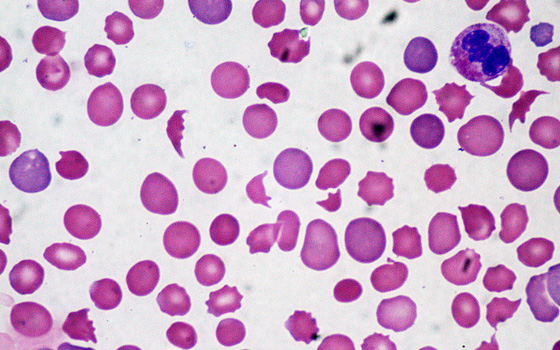фото: кров при гемолітичної анемії. Еритроцити - неправильної форми