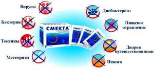 Смекта відноситься до препаратів природного походження. Діюча речовина - діоктаедрічний смектін - є потужним сорбентом і здатне адсорбувати не тільки токсини, а також патогенні мікроорганізми і продукти їх життєдіяльності. Завдяки цим властивостям Смекта з успіхом може застосовуватися для лікування харчових отруєнь та діареї бактеріального генезу. Захисна дія активного компонента препарату базується на збільшенні кількості і в'язкості кишкового слизу, яка підсилює слизову оболонку кишечника.