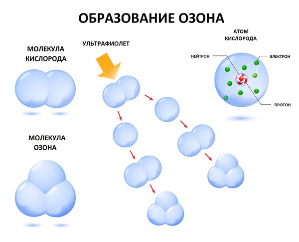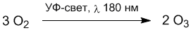 Озон виробляється при УФ опроміненні молекул кисню довжиною хвилі менше 180 нм.