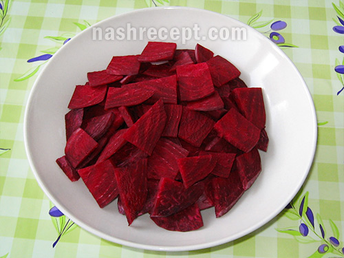 - Буряк нарізаємо тонкими пластинками.