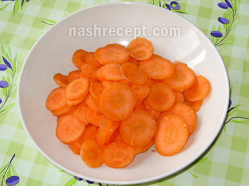 - Морква ріжемо тонкими кружечками.