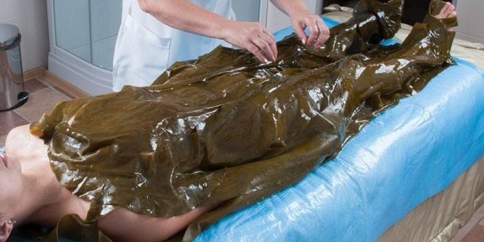 - Обгортання від розтяжок грудей. Порошок ламінарії залити на 25 хвилин теплою водою. Отриманий склад слід накладати на груди, зверху обгорнути плівкою, і залишити на годину.