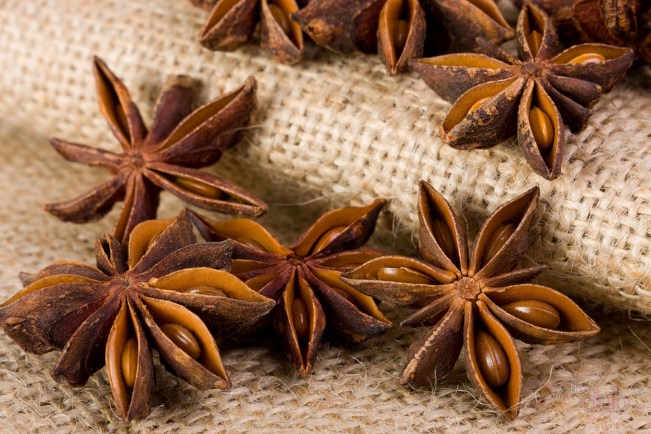 Бадьян - має слідкувати-гіркий присмак і гострі нотки, які не випаровується навіть при нагріванні. Він здатний поліпшити травлення, пом'якшити кашель, дозволяє легше дихати при застуді.