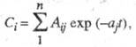 де n - число камер моделі, Aij - предекспоненціальний множники, aj - константа швидкості, t - час.