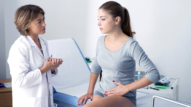 Типові тягнуть болі протягом менструацій, кровянистое виділення з усіх осередків розростань ендометрія. При кольпоскопії на шийці матки видно дрібні множинні вузлики або кісти, синюшні або червоні смужки. Кров'янисті-коричневі білі стають світлішими після менструації, їх обсяг в цей період зменшується і знову збільшується перед наступними місячними. Ендометріоз органів черевної порожнини - часта причина внутрішньої кровотечі та подальшої операції (лапаротомія).