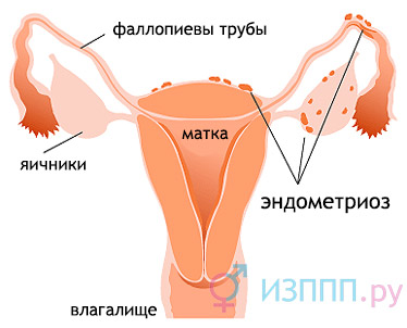 Ендометріоз - розростання залозистої тканини (ендометрія) в шийці і м'язовому шарі матки (міометрії), маткових трубах, яєчниках, в органах черевної порожнини. Клітини ендометрію потрапляють в нетипові місця під час абортів, при інструментальних обстеженнях матки, під час пологів і при зворотному закиданні менструальних мас. Ендометріоз распространяетс я, призводить до численних місцевих запалень і утворення спайок; Найчастіше ускладнення - безпліддя.