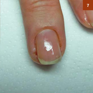 [Icon position = "left" size = "1" bg = "false" ficon = "icon-minus-sign»] Нігтьова пластина на руці практично завжди має вільний край, що виходить за дистальний валик. У зв'язку з цим вона схильна до частих травмами сколів. Оброблені нігті на стопі мають довжину вільного краю 0,5-1 мм.