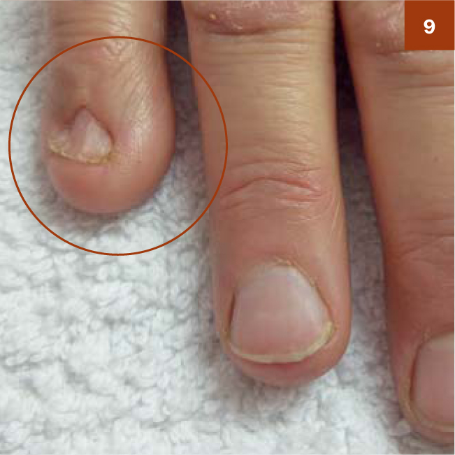5-я стадія - врослий ніготь після оперативного втручання, з рецидивом (фото 8, 9).