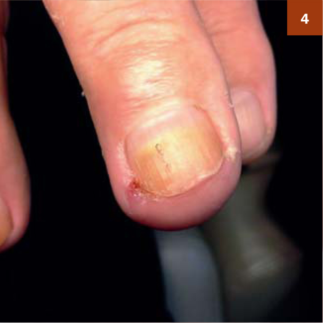 - 3-тя і 4-я стадії - врослий ніготь із запаленням, нагноєнням і гіпергрануляцій (фото 5).