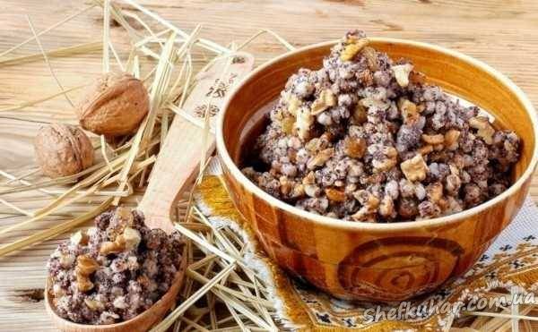 0,5 л пшениці, 2 склянки маку, 2 склянки волоських горіхів, 1 склянка меду, родзинки.