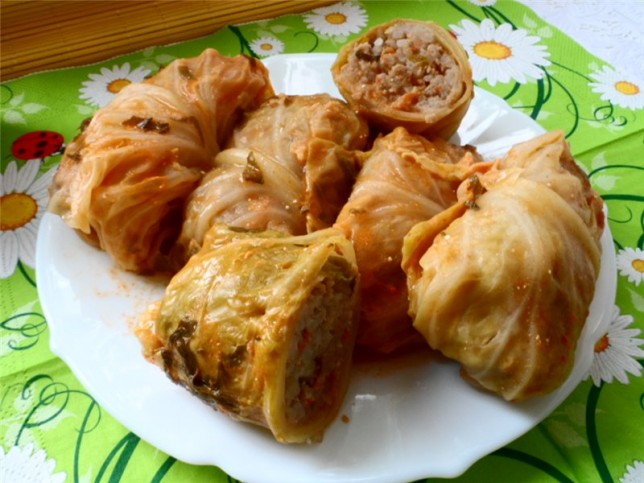 Листя капусти відокремити від качана, відпарити в підсоленій воді. Потовщені місця зрізати.