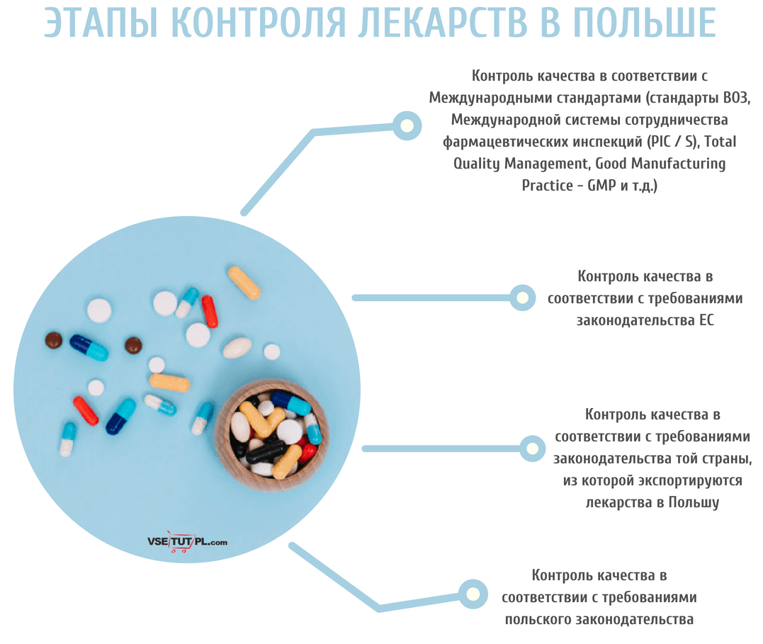 Діяльність аптек і продаж всіх медичних препаратів в Польщі строго контролюється відповідними інстанціями та за будь-виявлене порушення карається високими штрафами. Крім того, всі ліки, перш ніж надійти в продаж, проходять кілька етапів перевірок, стандартизованих відповідно до вимог ЄС, тому якість таких ліків є гарантування и м.